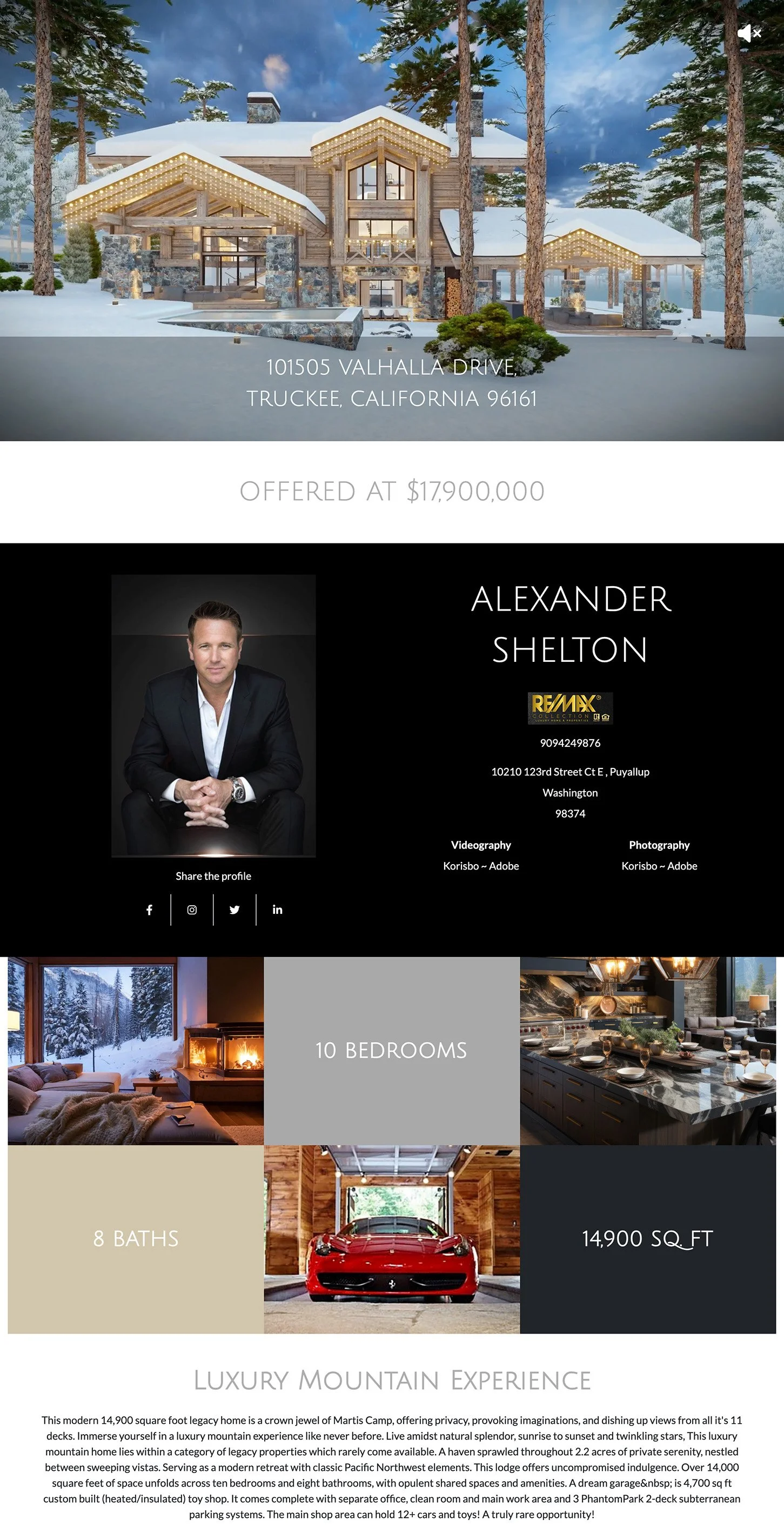 | Premium Property Website | Larger homes 4,000+ sq. ft. with video/3D/floorplans | $399 |